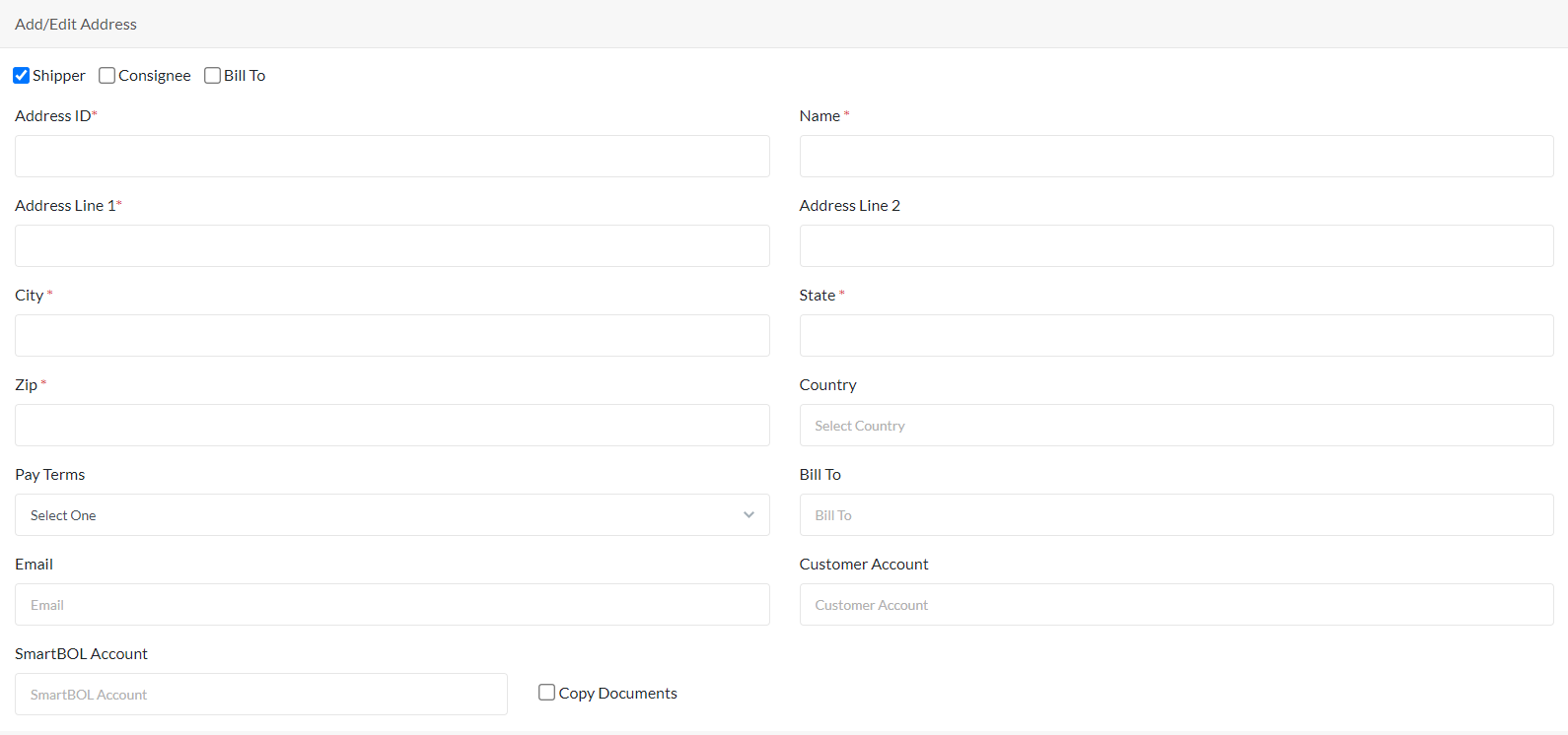 4. Select "Shipper", "Consignee", and/or "Bill To", depending on type of address.