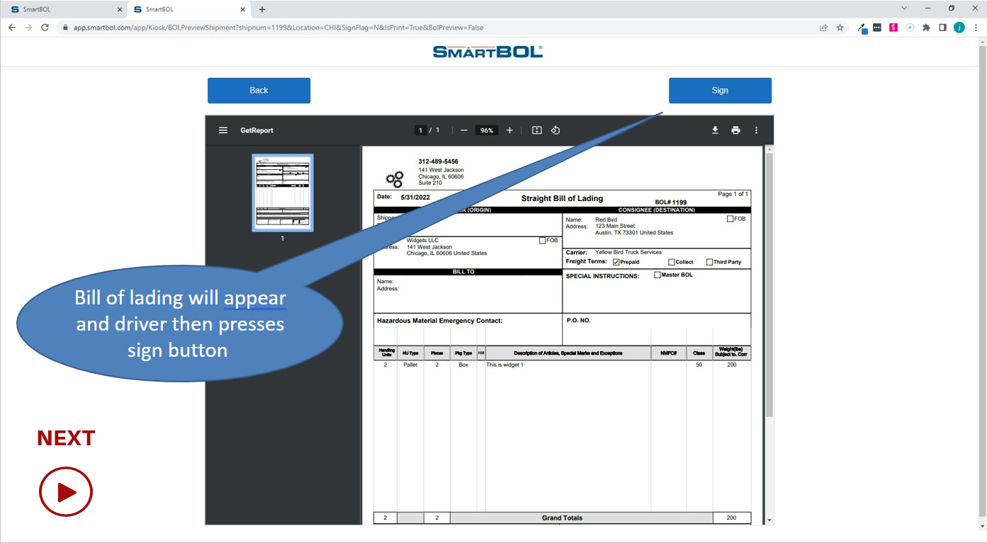 Click sign once BOL preview appears.
